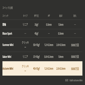 - Autumn Mini は 40gf でちょうどいい押下圧 + クリッキーな打鍵感の両立